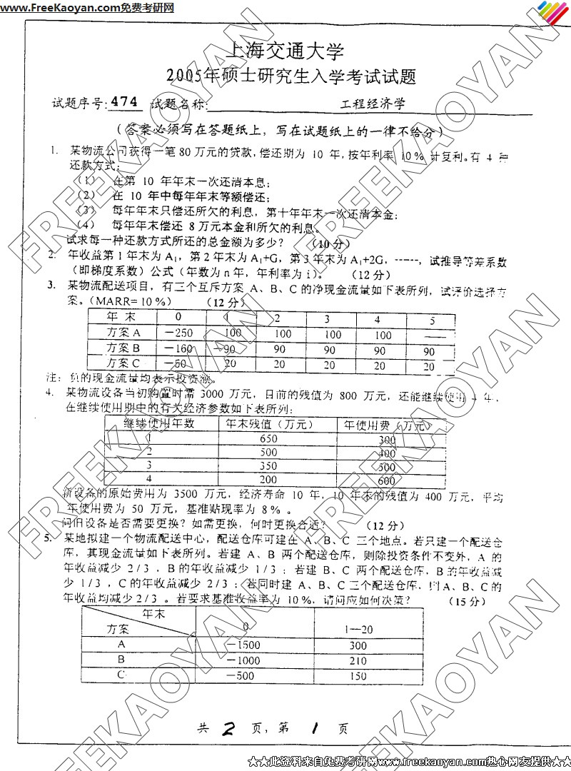 上海交通大学2005年考研真题-工程经济学