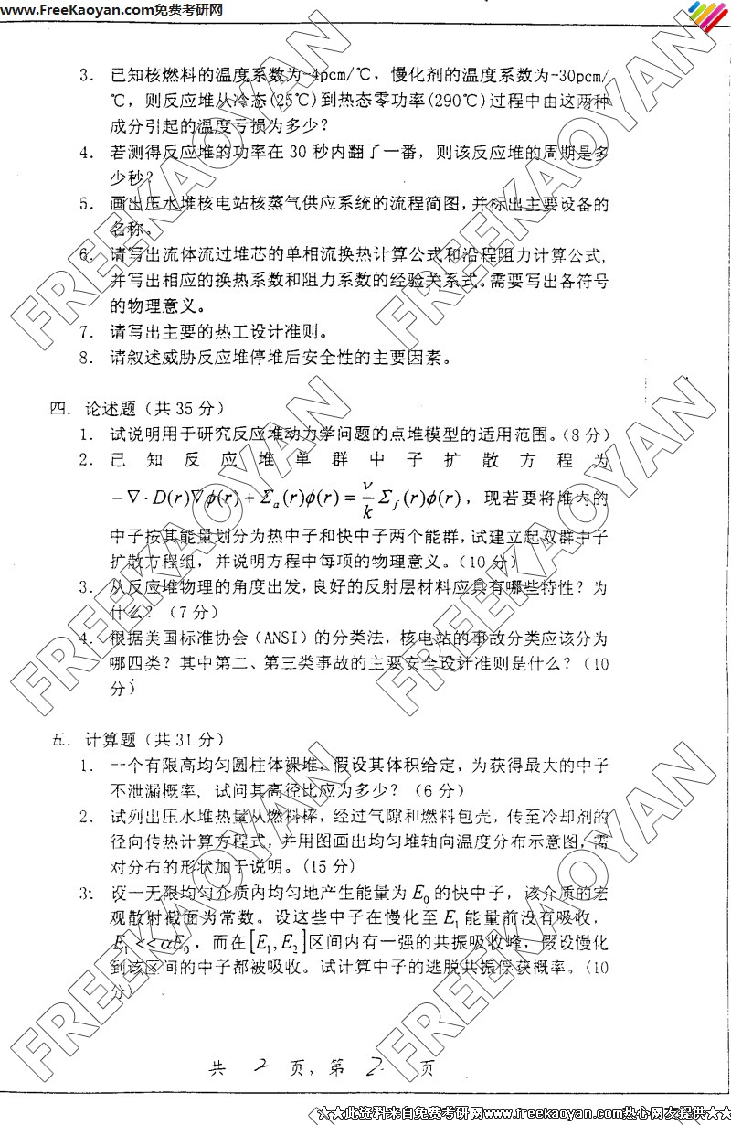 上海交通大学2005年考研真题-核反应堆工程(2)