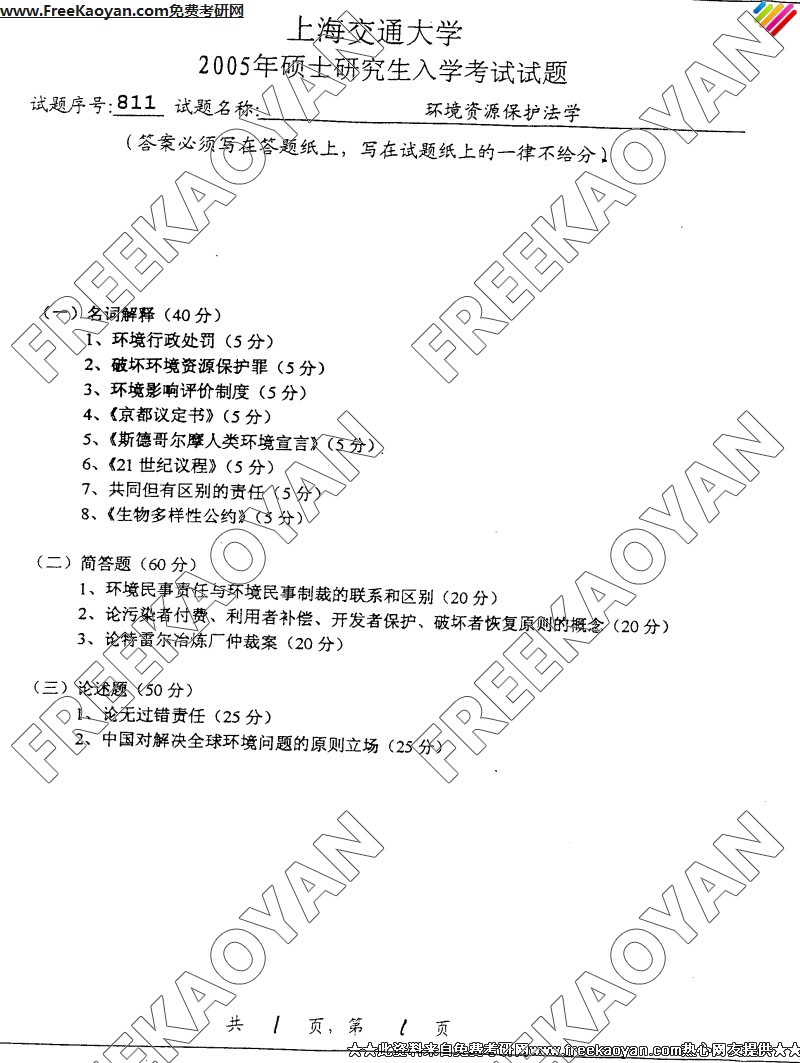 相关话题/考研真题 上海交通大学 环境 法学 资源