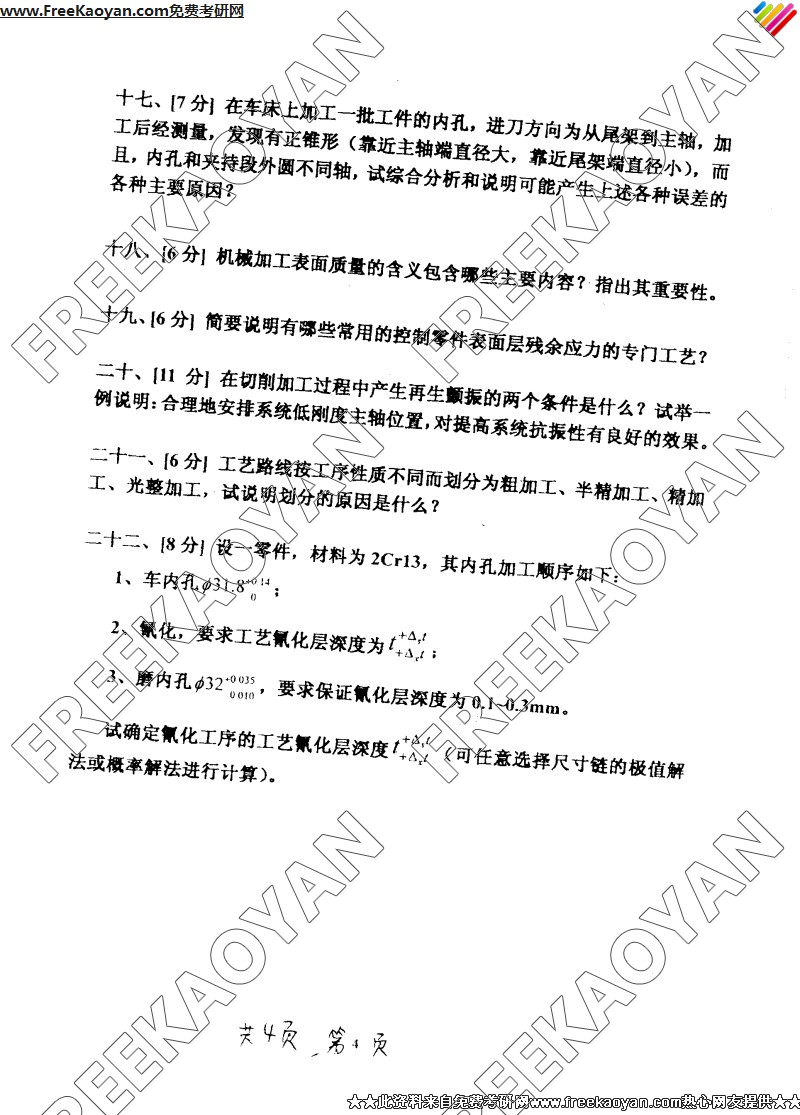 上海交通大学2005年考研真题-机械制造工艺学(4)