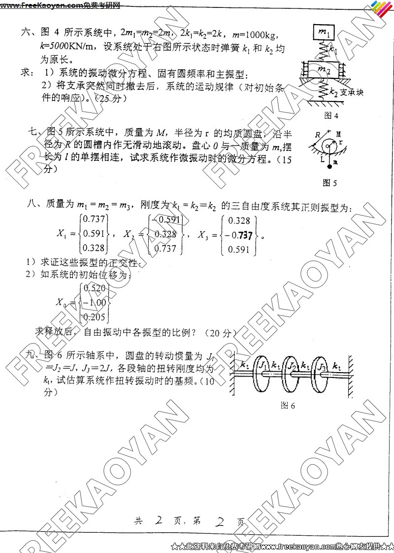 上海交通大学2005年考研真题-机械振动学(2)