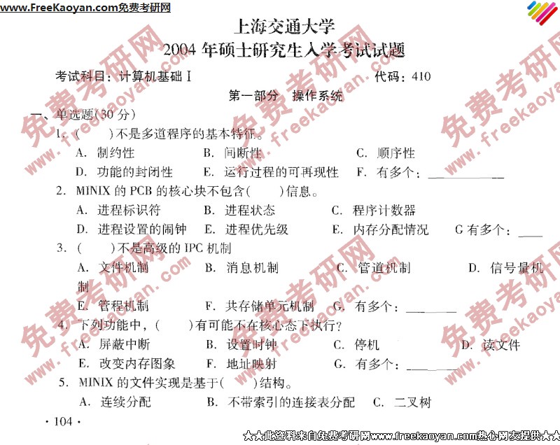 专业课考研经验 本站小编 FreeKaoyan 2018-01-23上海交通大学2005年考研真题-计算机基础(2)