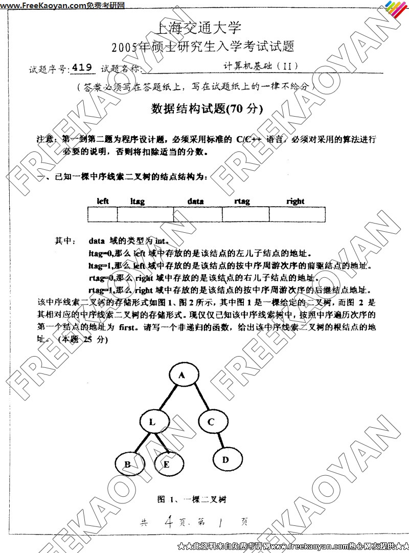 专业课考研经验 本站小编 FreeKaoyan 2018-01-23上海交通大学2005年考研真题-计算机基础(2)