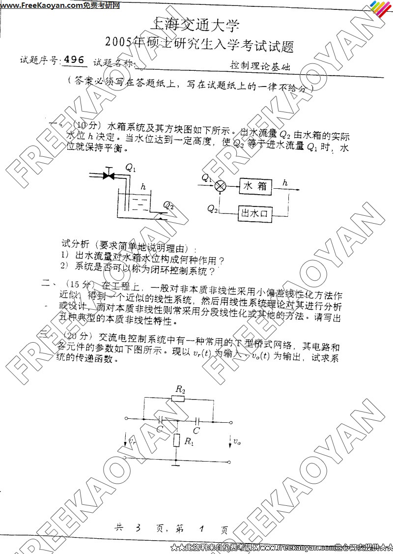 相关话题/上海交通大学 考研真题 控制