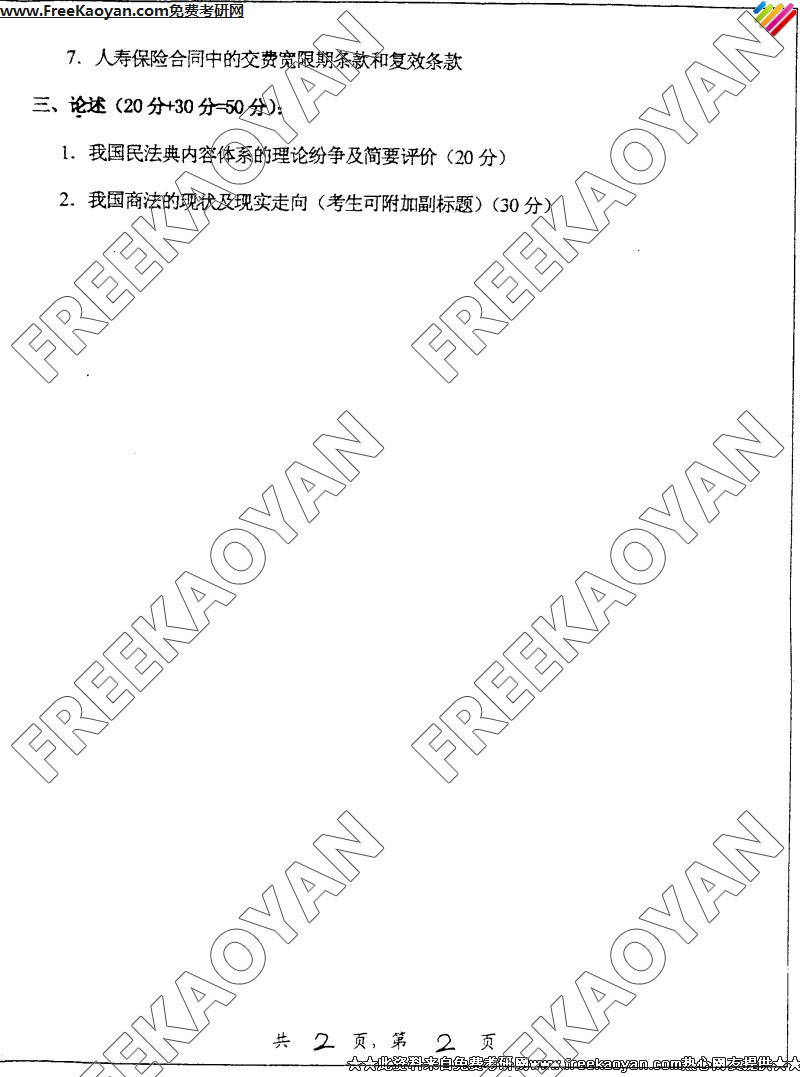 上海交通大学2005年考研真题-民商法学(2)