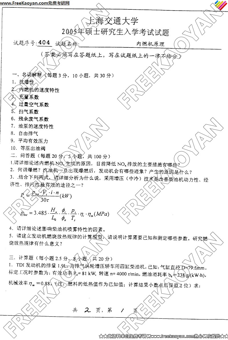 相关话题/考研真题 上海交通大学 内燃机 原理