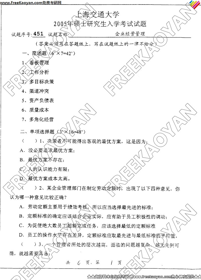 专业课考研经验 本站小编 FreeKaoyan 2018-01-23上海交通大学2005年考研真题-经济学