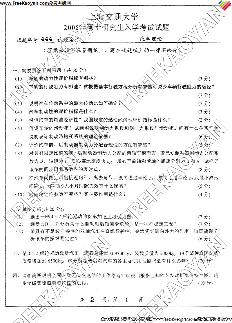 专业课考研经验 本站小编 FreeKaoyan 2018-01-23上海交通大学2005年考研真题-内燃机原理