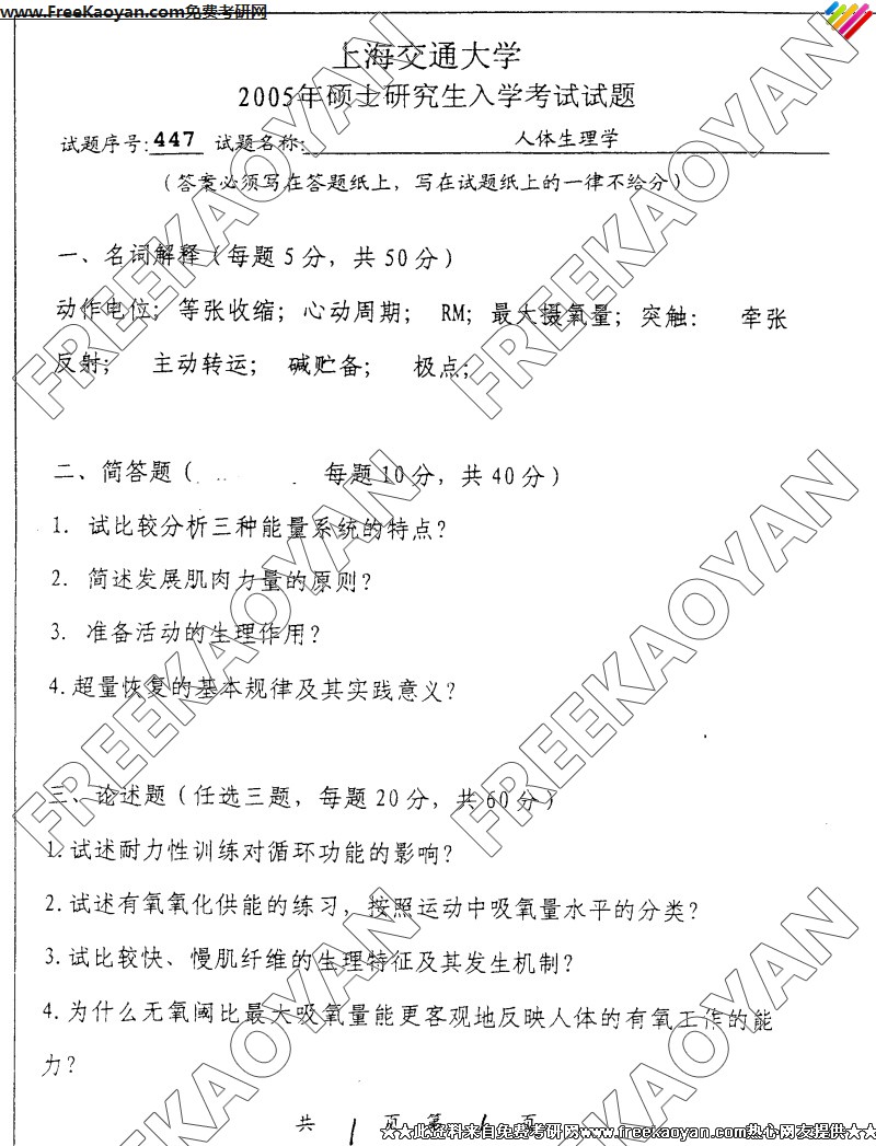 专业课考研经验 本站小编 FreeKaoyan 2018-01-23上海交通大学2005年考研真题-内燃机原理