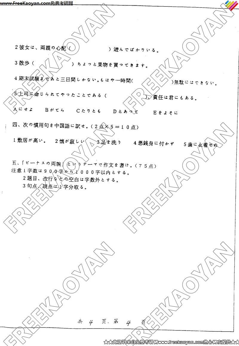 专业课考研经验 本站小编 FreeKaoyan 2018-01-23上海交通大学2005年考研真题-日语(二外)