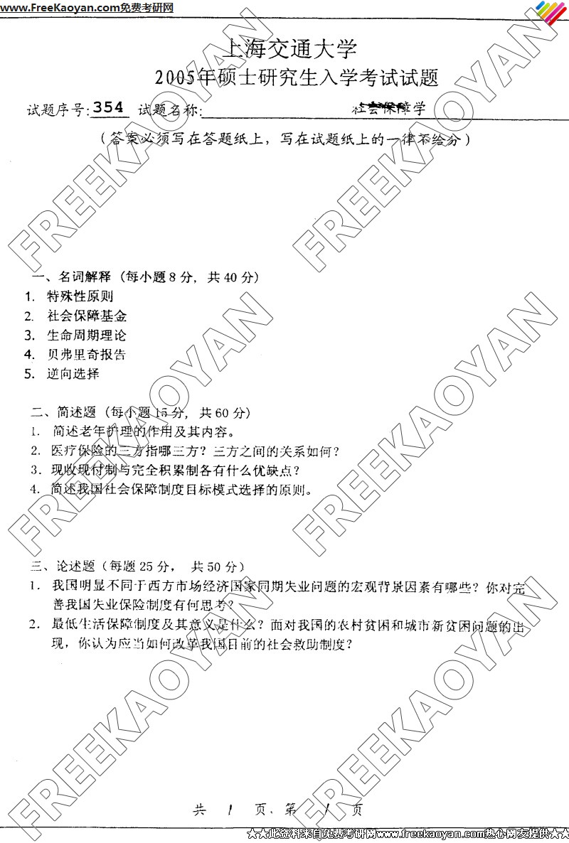 专业课考研经验 本站小编 FreeKaoyan 2018-01-23上海交通大学2005年考研真题-设计史论