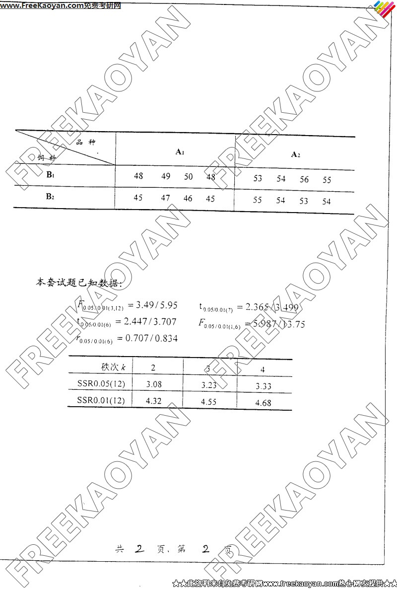 上海交通大学2005年考研真题-生物统计学(2)