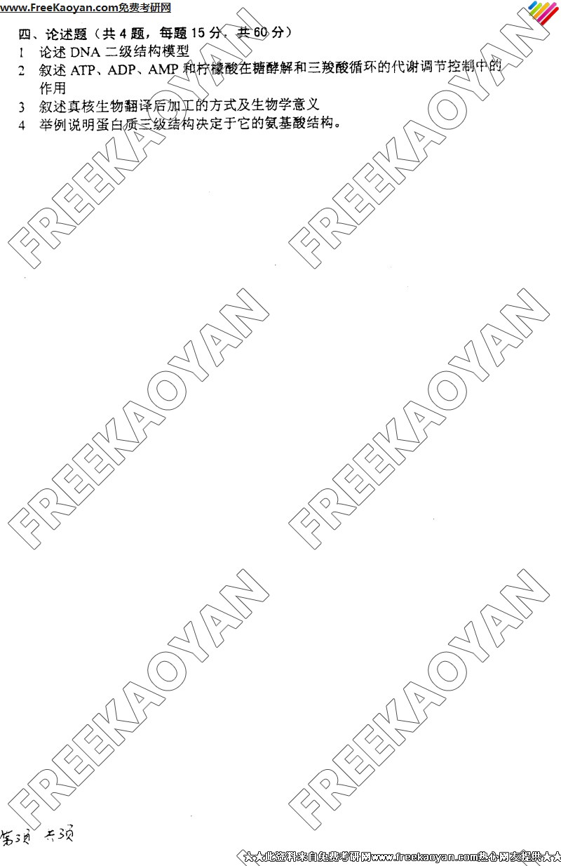 专业课考研经验 本站小编 FreeKaoyan 2018-01-23上海交通大学2005年考研真题-生物化学2