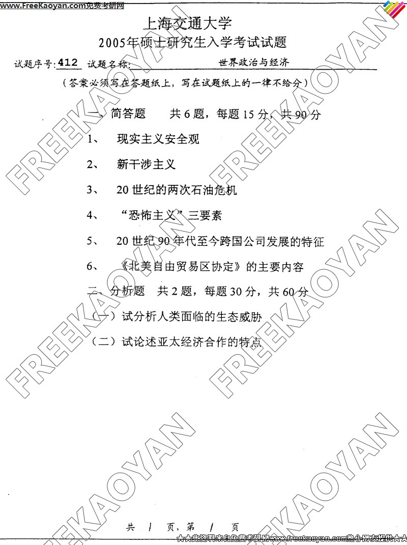 相关话题/上海交通大学 考研真题 经济 政治 世界
