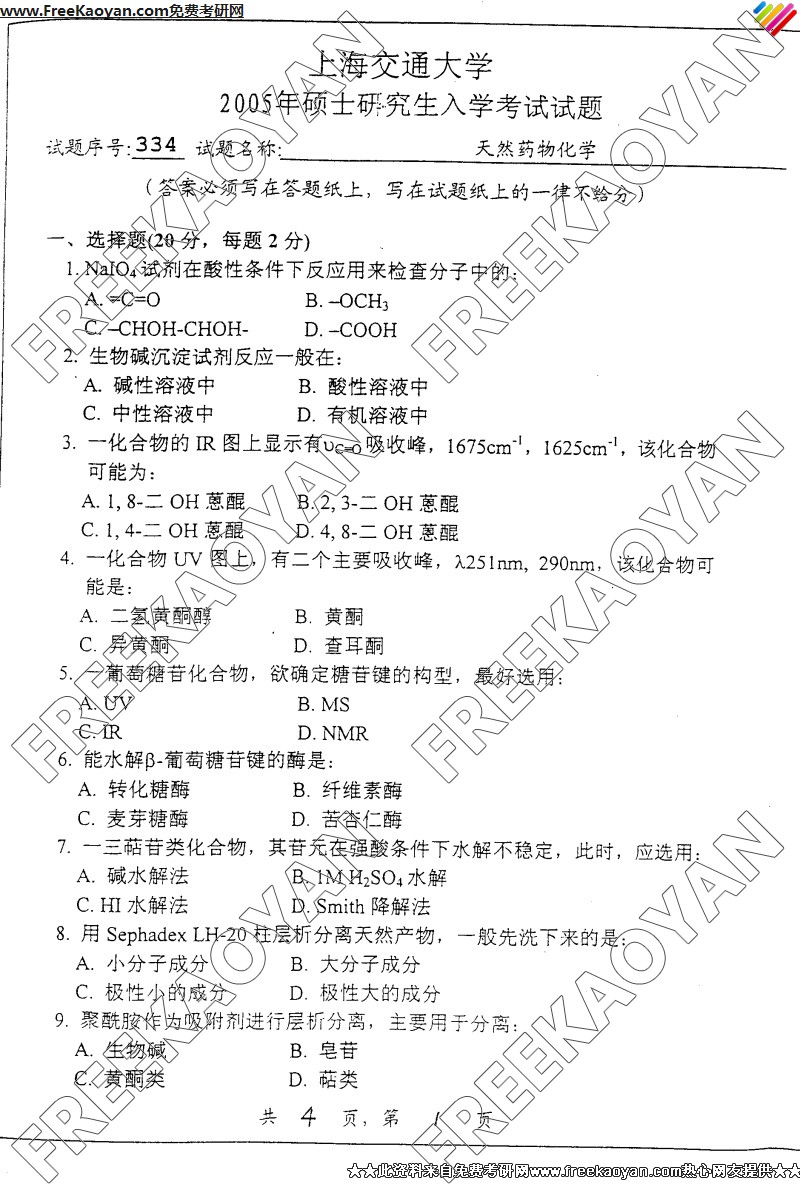 上海交通大学2005年考研真题-天然药物化学