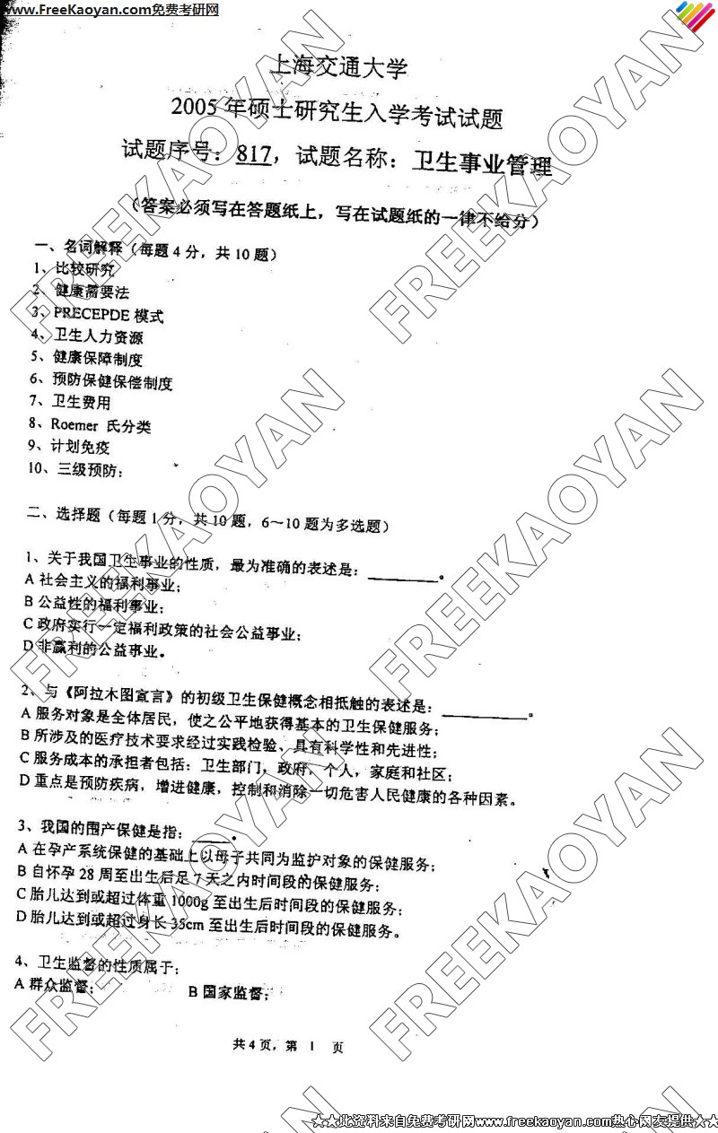 相关话题/考研真题 上海交通大学 管理 卫生事业