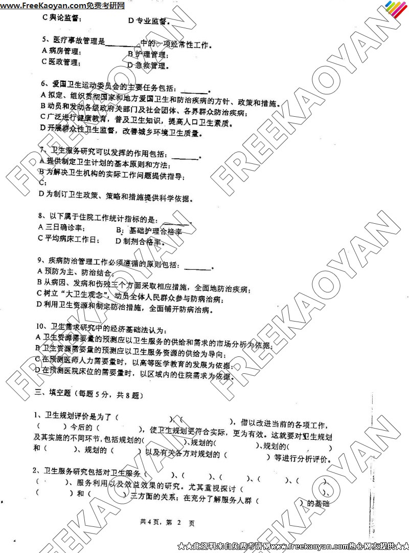 上海交通大学2005年考研真题-卫生事业管理(2)