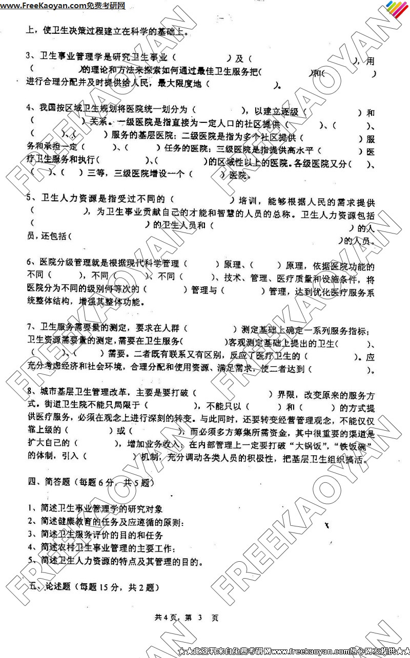 上海交通大学2005年考研真题-卫生事业管理(3)