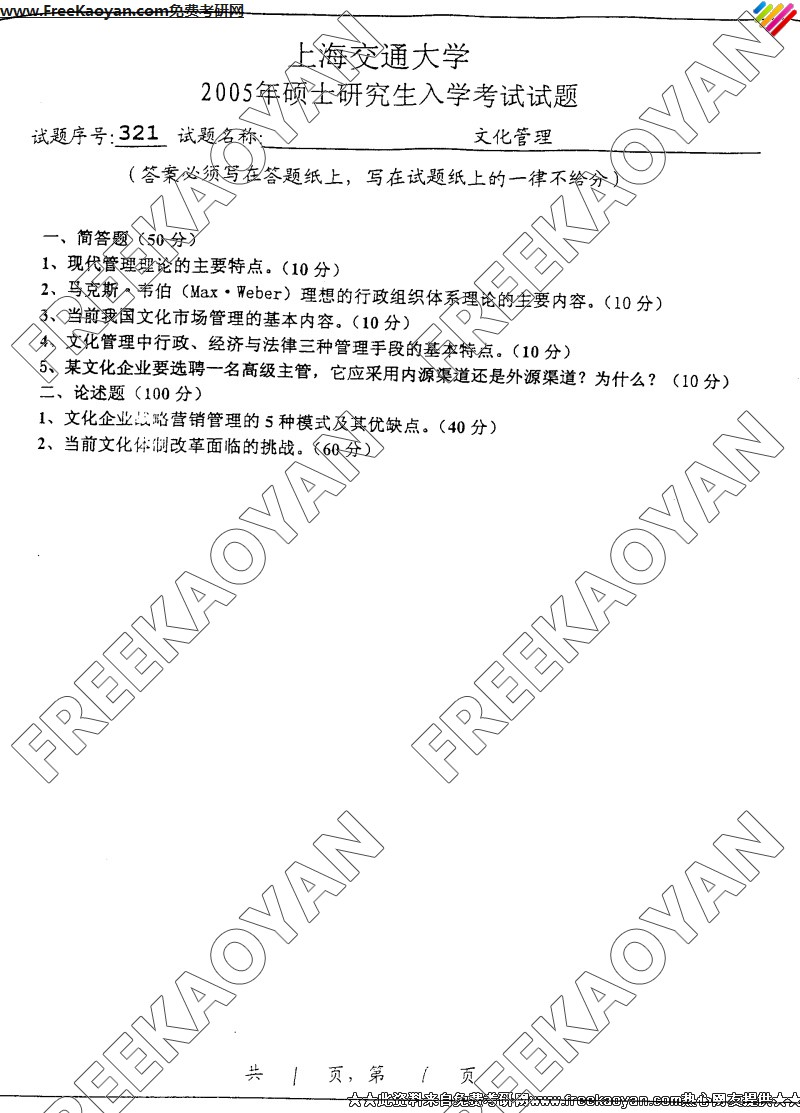 相关话题/考研真题 上海交通大学 管理 文化