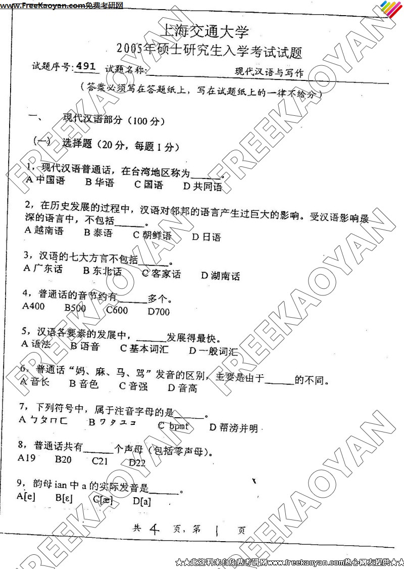 相关话题/考研真题 上海交通大学 写作 现代汉语
