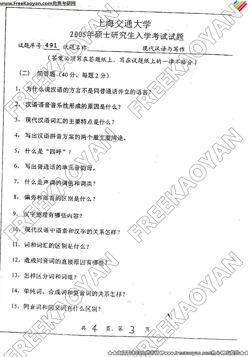 上海交通大学2005年考研真题-现代汉语与写作(3)