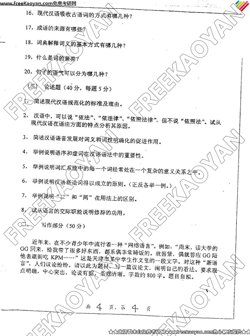 上海交通大学2005年考研真题-现代汉语与写作(4)