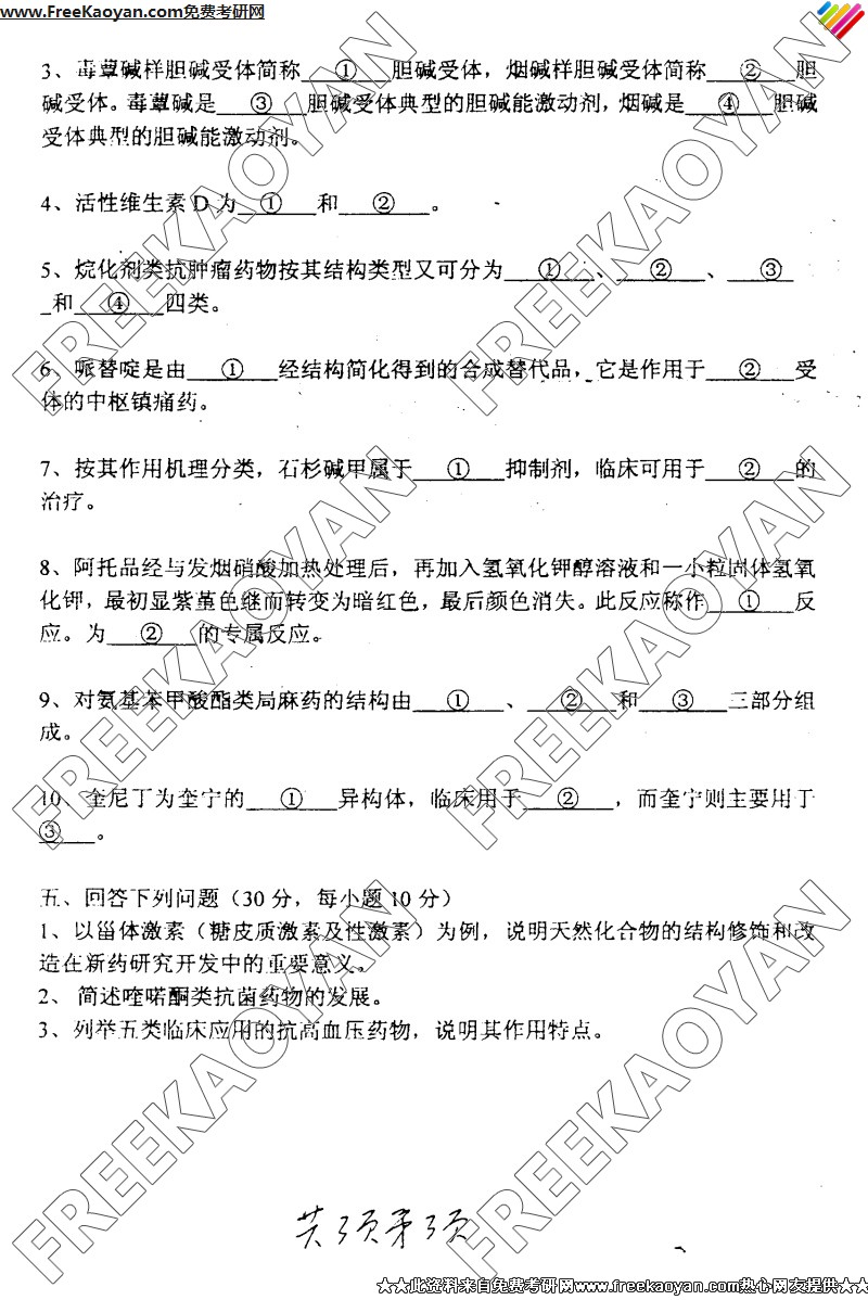 专业课考研经验 本站小编 FreeKaoyan 2018-01-23上海交通大学2005年考研真题-天然药物化学