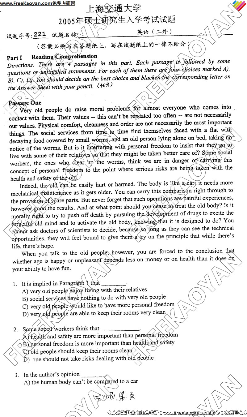 专业课考研经验 本站小编 FreeKaoyan 2018-01-23上海交通大学2005年考研真题-英美文学