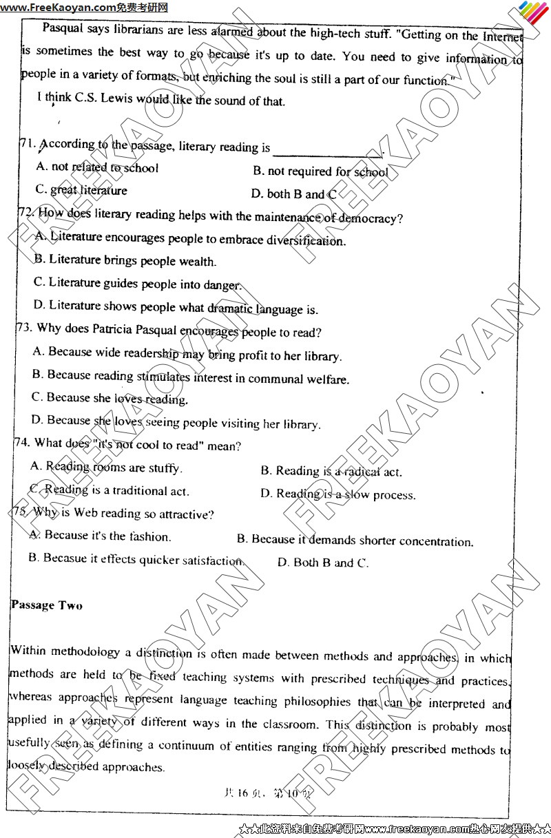 专业课考研经验 本站小编 FreeKaoyan 2018-01-23上海交通大学2005年考研真题-英美文学