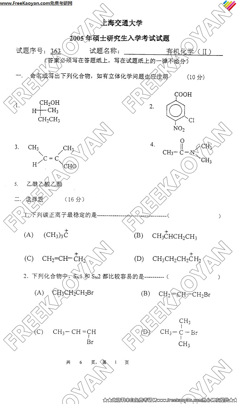 专业课考研经验 本站小编 FreeKaoyan 2018-01-23上海交通大学2005年考研真题-药物化学