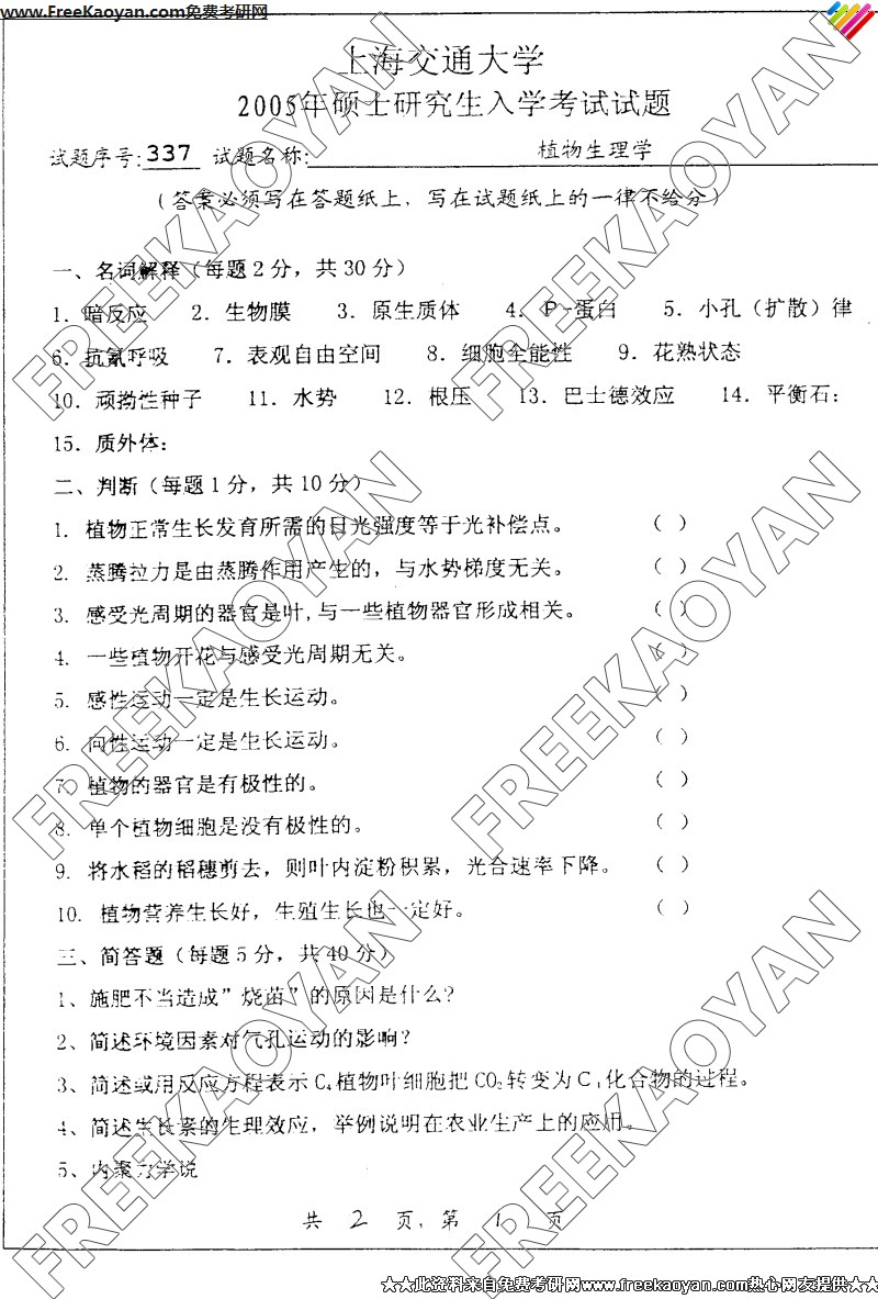 专业课考研经验 本站小编 FreeKaoyan 2018-01-23上海交通大学2005年考研真题-园林规划与设计