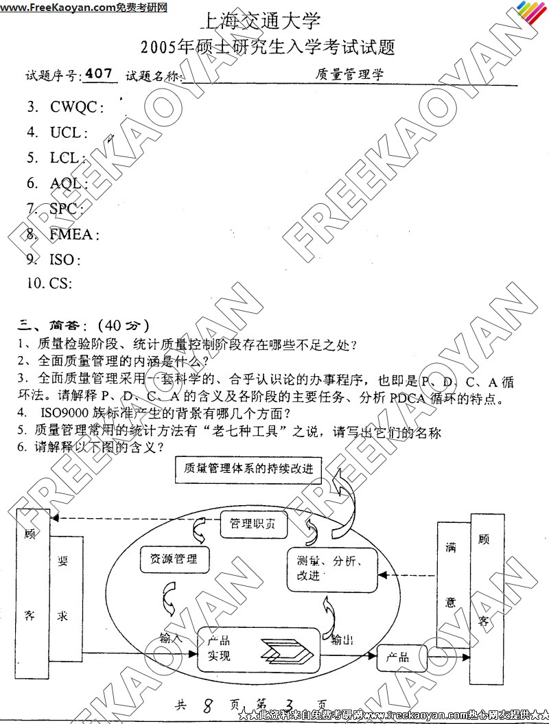 上海交通大学2005年考研真题-质量管理学(3)
