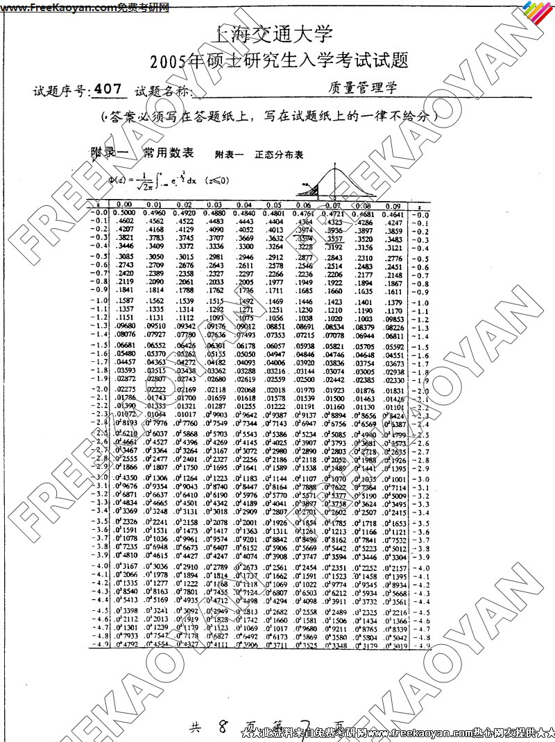 专业课考研经验 本站小编 FreeKaoyan 2018-01-23上海交通大学2005年考研真题-运筹学与概率统计