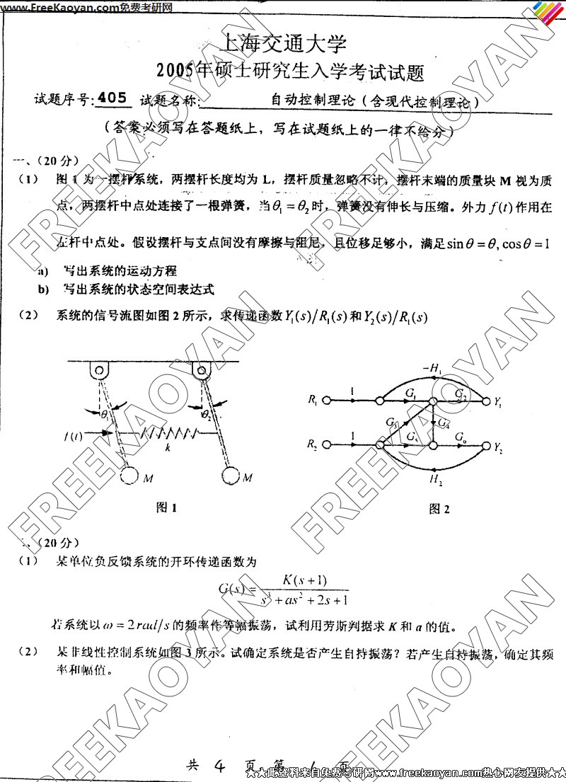 上海交通大学2005年考研真题-自动控制理论