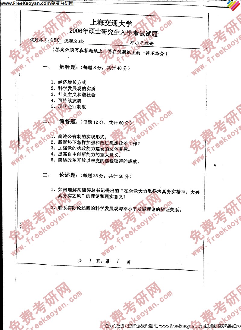 专业课考研经验 本站小编 FreeKaoyan 2018-01-23上海交通大学2006年考研真题-当代中国政府与政治
