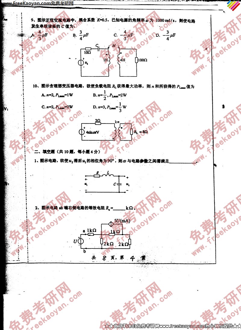 上海交通大学2006年考研真题-电路基本理论(含电路设计)(4)