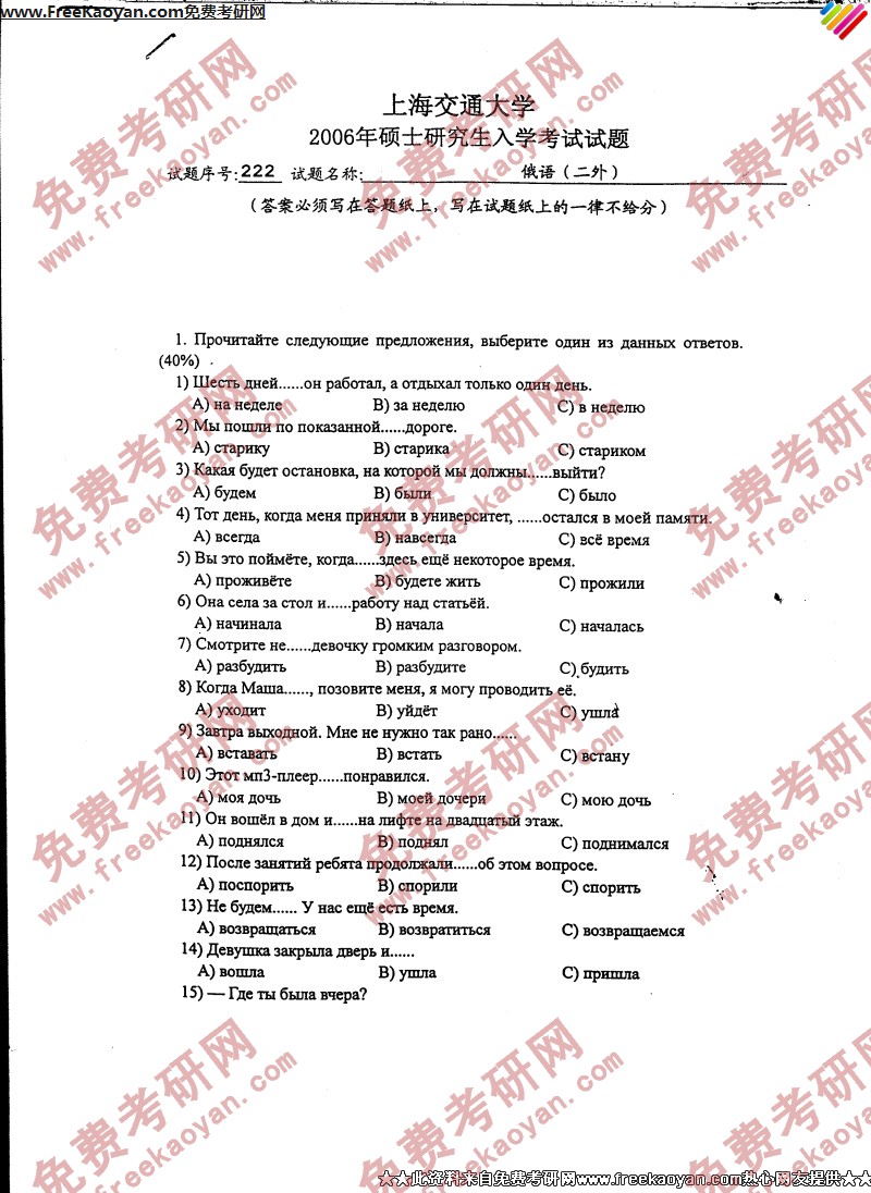 专业课考研经验 本站小编 FreeKaoyan 2018-01-23上海交通大学2006年考研真题-德语二外