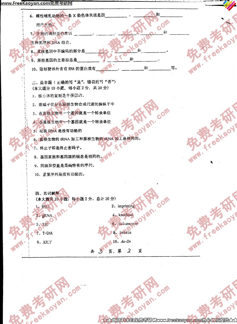 专业课考研经验 本站小编 FreeKaoyan 2018-01-23上海交通大学2006年考研真题-动物遗传学