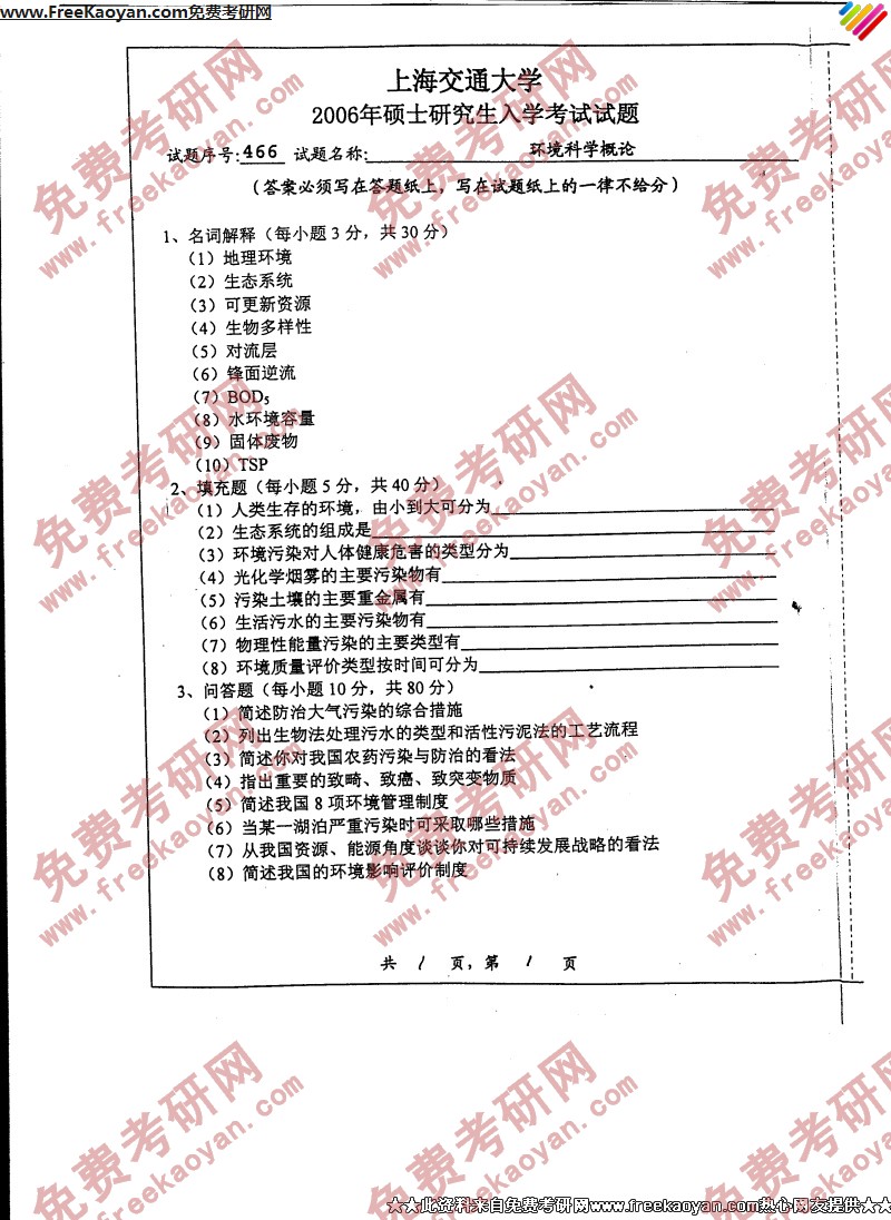 相关话题/考研真题 环境科学 上海交通大学 概论