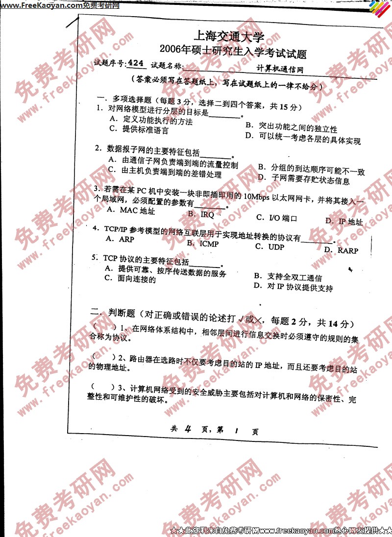 相关话题/考研真题 计算机 上海交通大学 通信网