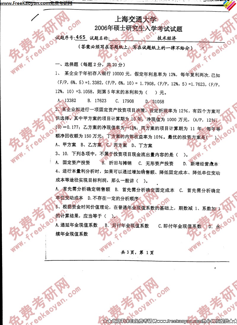 专业课考研经验 本站小编 FreeKaoyan 2018-01-23上海交通大学2006年考研真题-会计学