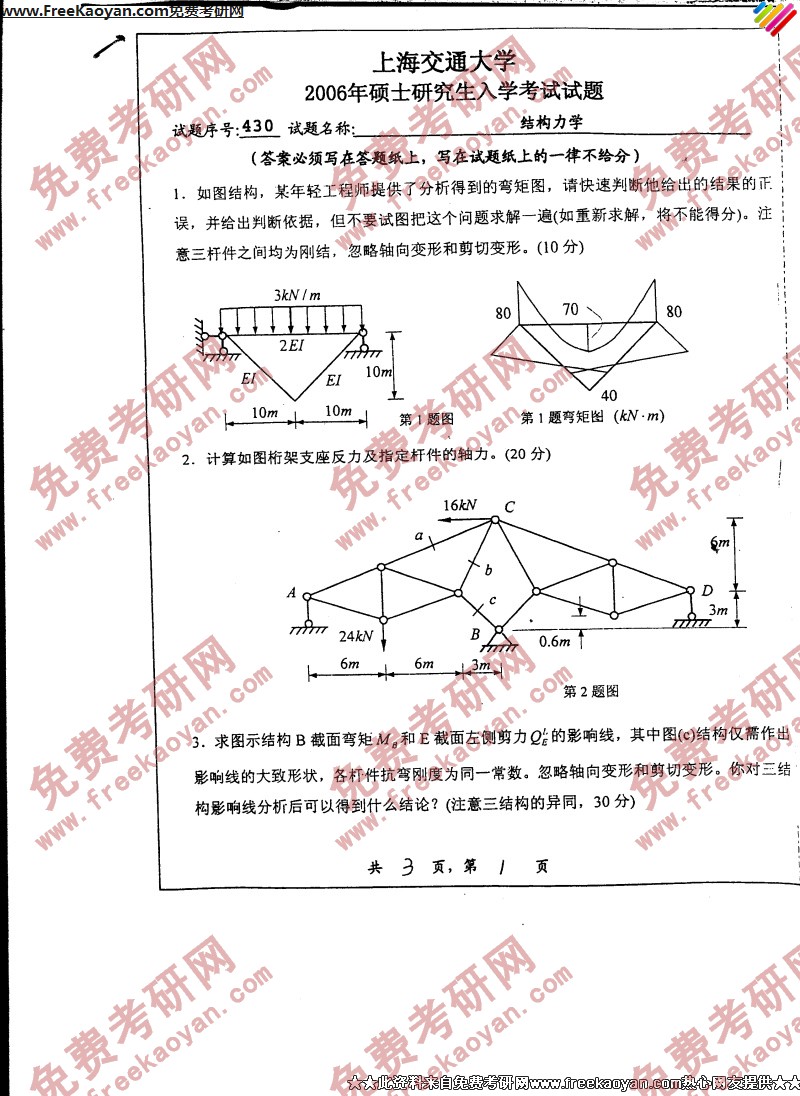 专业课考研经验 本站小编 FreeKaoyan 2018-01-23上海交通大学2006年考研真题-建筑设计