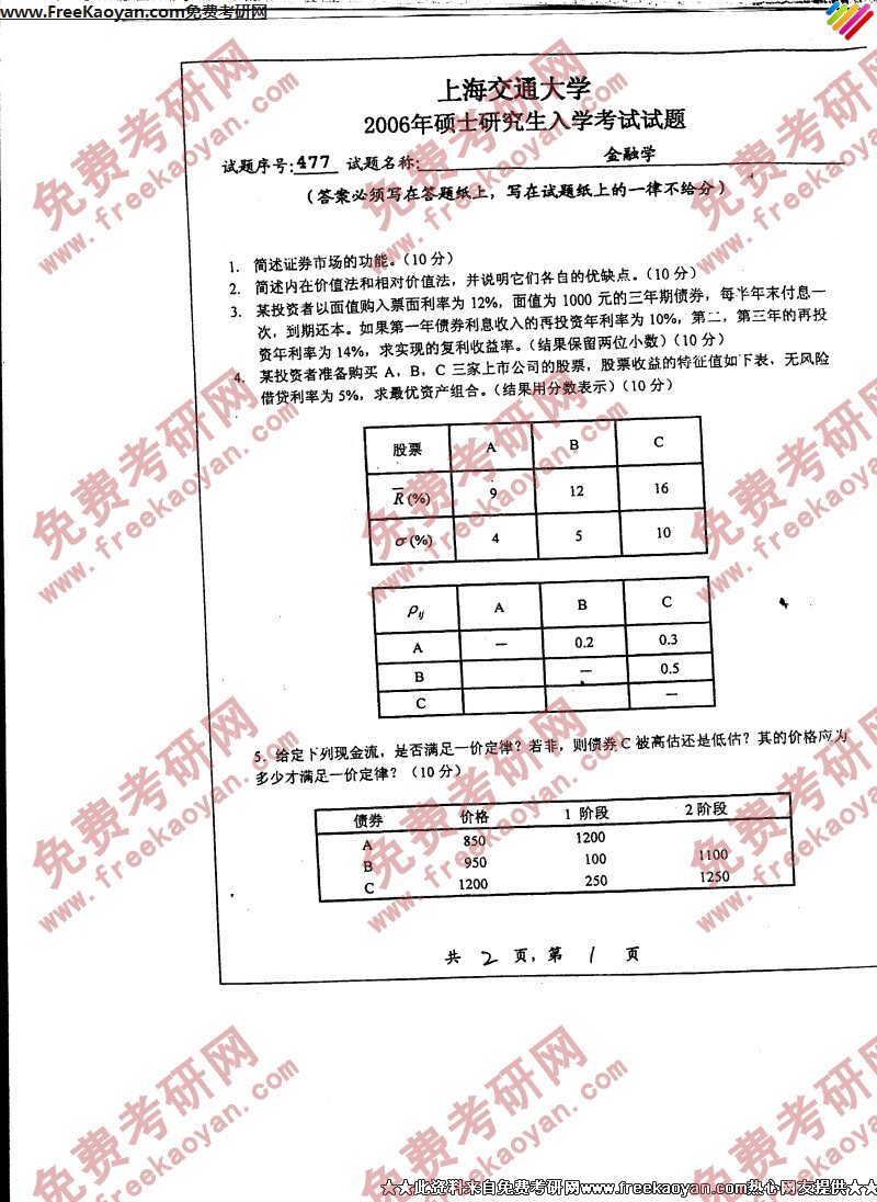 专业课考研经验 本站小编 FreeKaoyan 2018-01-23上海交通大学2006年考研真题-技术经济