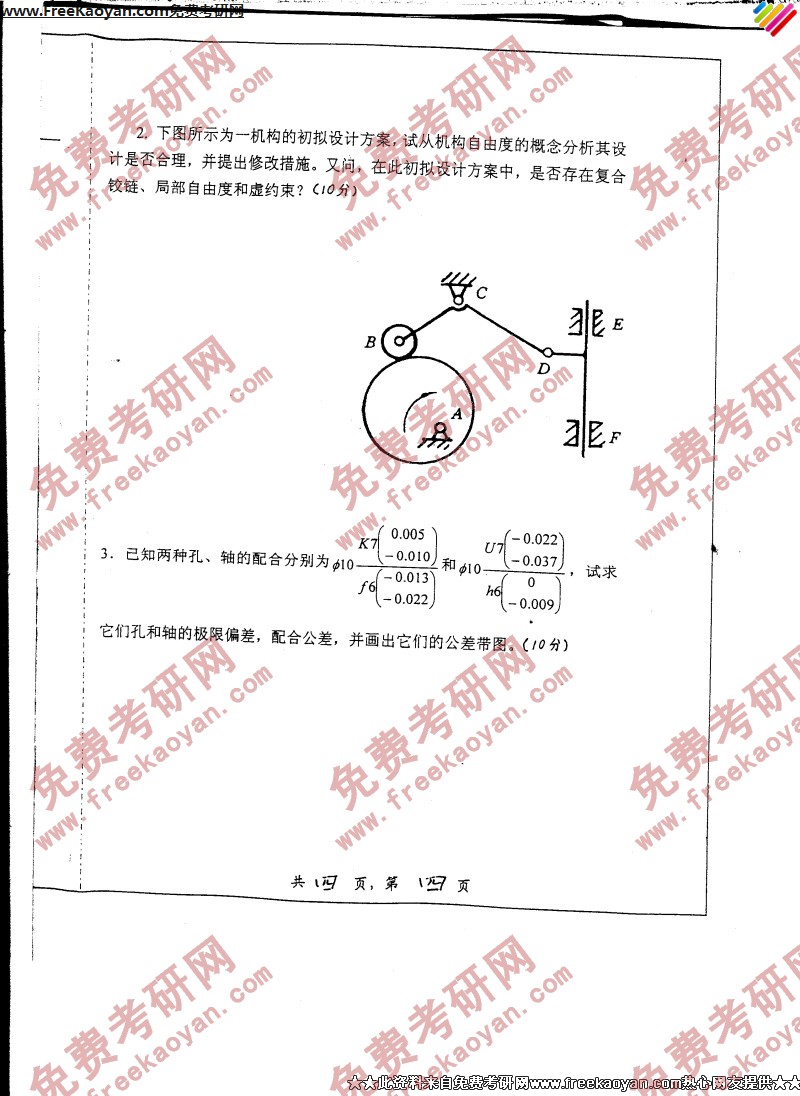 专业课考研经验 本站小编 FreeKaoyan 2018-01-23上海交通大学2006年考研真题-机械设计基础