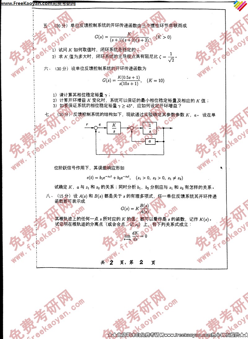 专业课考研经验 本站小编 FreeKaoyan 2018-01-23上海交通大学2006年考研真题-机电控制技术