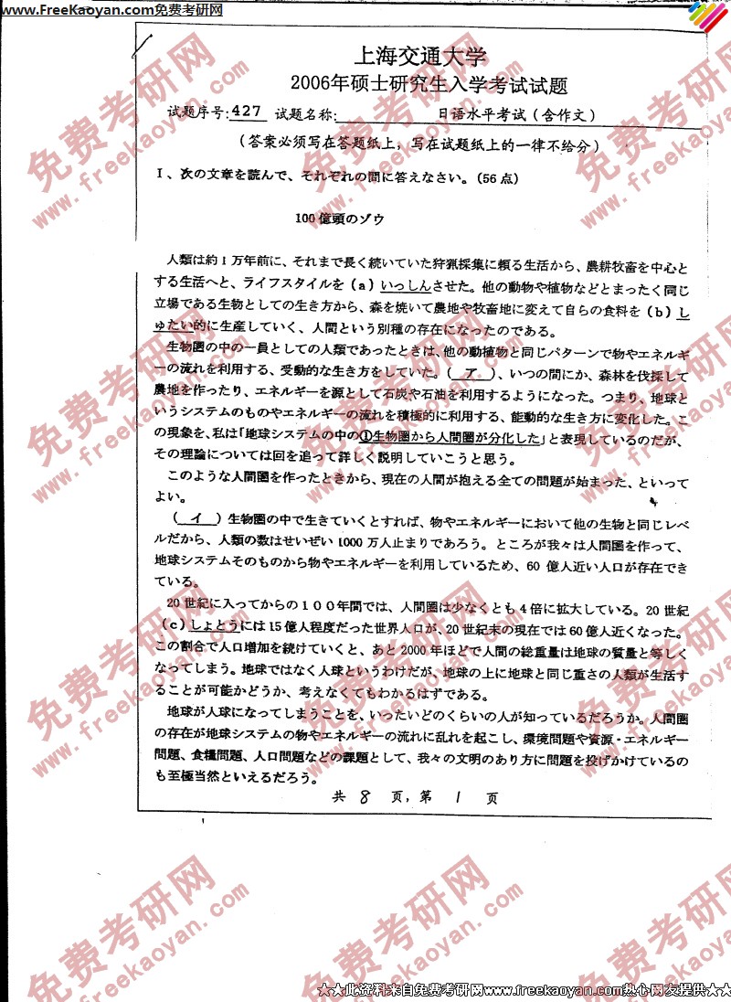专业课考研经验 本站小编 FreeKaoyan 2018-01-23上海交通大学2006年考研真题-评论写作