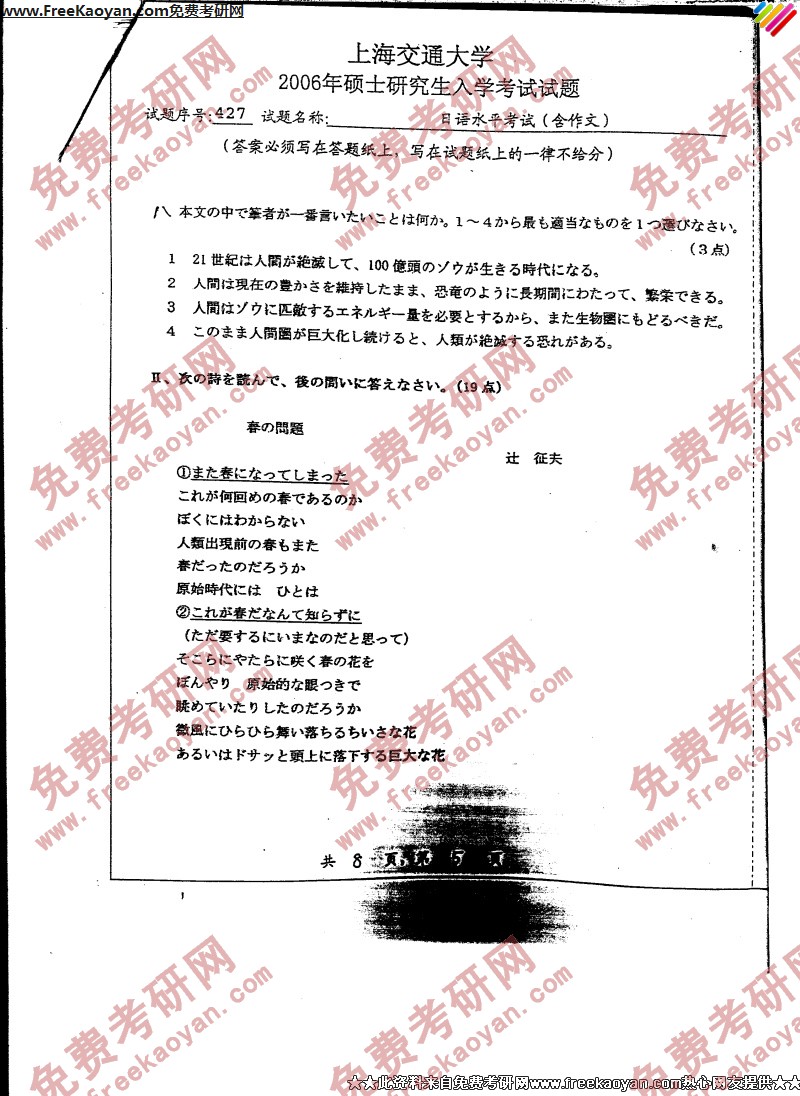 上海交通大学2006年考研真题-日语二外