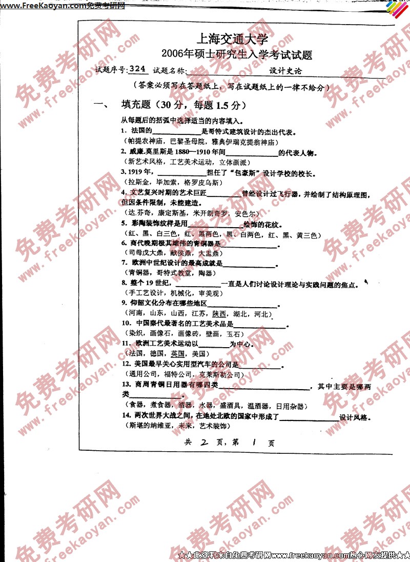 专业课考研经验 本站小编 FreeKaoyan 2018-01-23上海交通大学2006年考研真题-设计基础