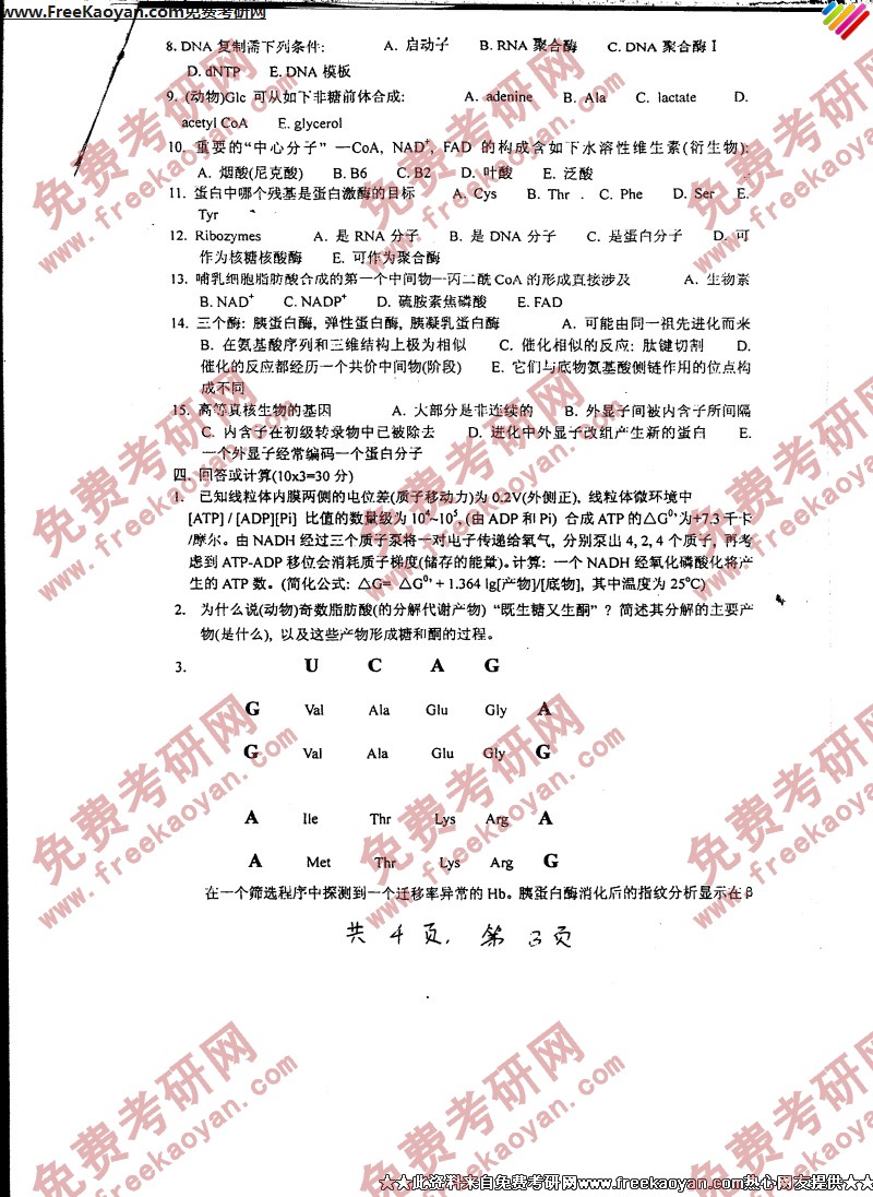 上海交通大学2006年考研真题-生物化学(I)(3)