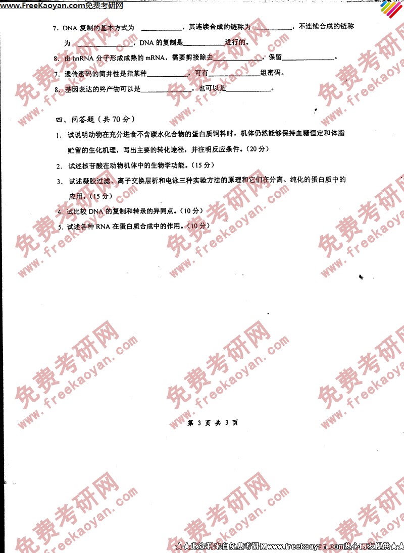 专业课考研经验 本站小编 FreeKaoyan 2018-01-23上海交通大学2006年考研真题-生物化学(III)